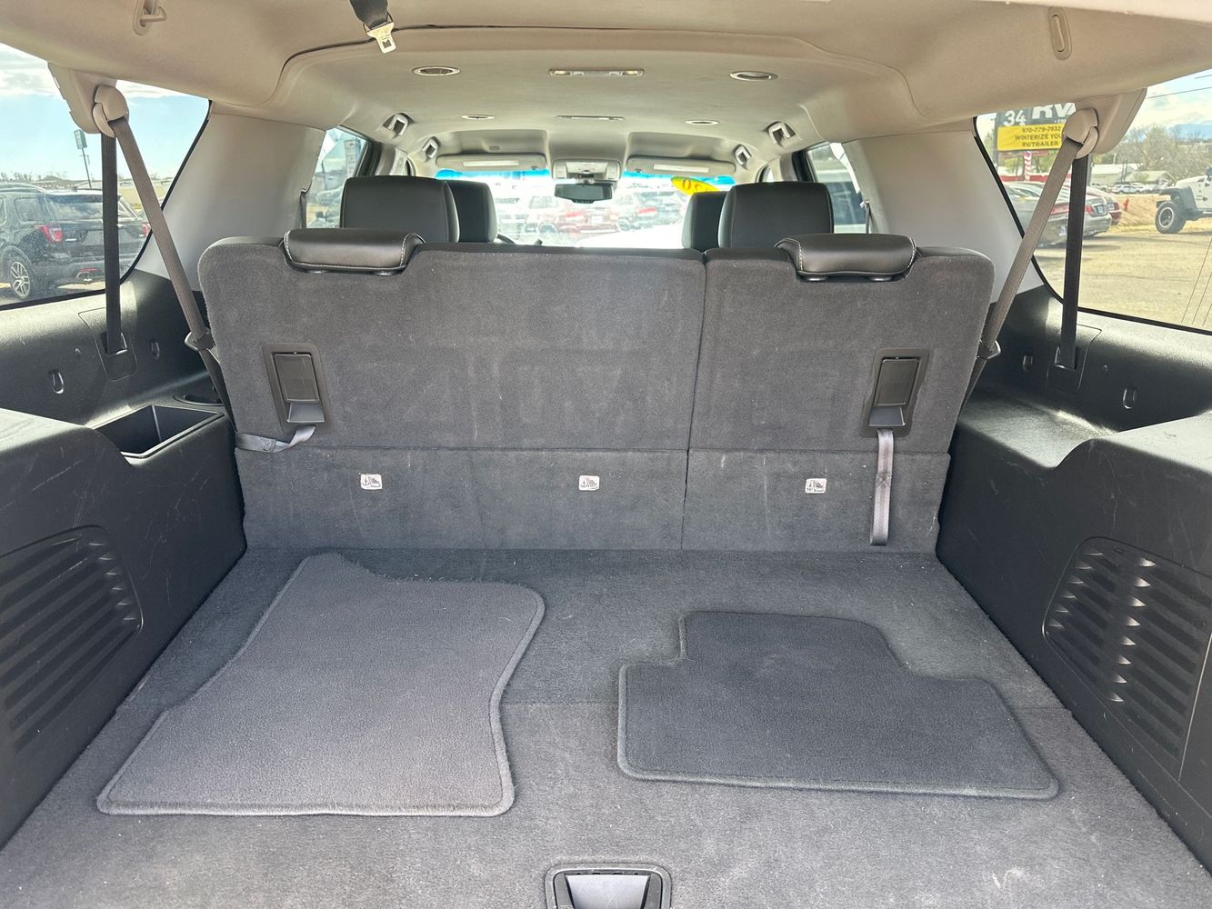 Third-row seatback upholstery: Carpet third-row seatback upholstery